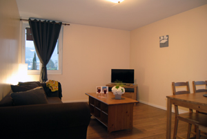 Equipements communs : Coin cuisine aménagé avec micro onde et plaque électrique, salon/salle à manger avec Tv et canapé convertible, salle d'eau douche ou baignoire.